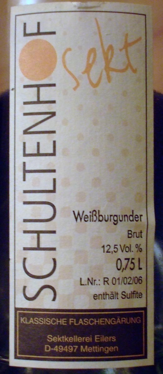 Niedersächsischer(!) Sekt von Jörg aus Mettingen mitgebracht, wo er ihn von einem Ladenbauer geschenkt bekam. In der Tat sehr brut, ausgesprochen herb, mit einer fast leicht bitteren Note, interessant.