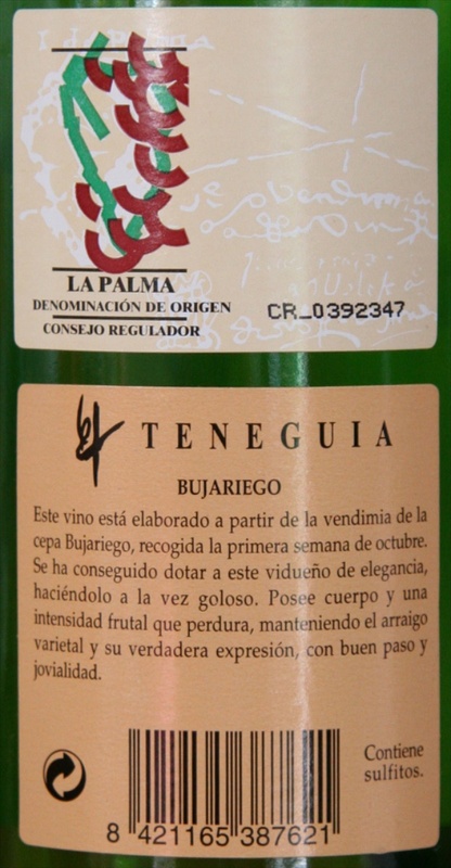Eine echte Überraschung: ein palmerischer Wein, den man wirklich trinken kann. Über Landwein-Niveau, ausgewogen. Für La-Palma-Verhältnisse mit 4,50 Euro aber eher teurer, besonders im Vergleich mit dem viel besseren Esmeralda.