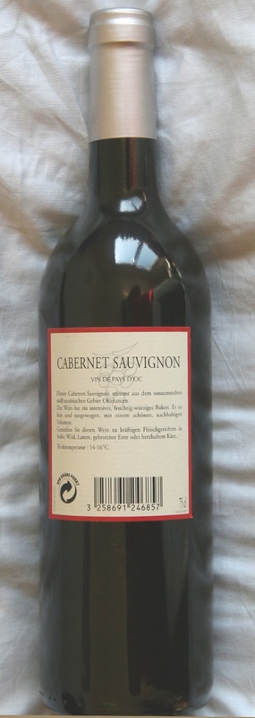 Gekauft Januar 2007 für Glühwein bei Wertheim, 2,99 oder 1,99 Euro. Für den Glühwein wäre er sicher ganz gut gewesen. So getrunken ist er zwar nicht lasch, aber seine kräftige Säure wird nicht durch anderes ausbalanciert. Zu deutsch: sauer und nicht sehr interessant.