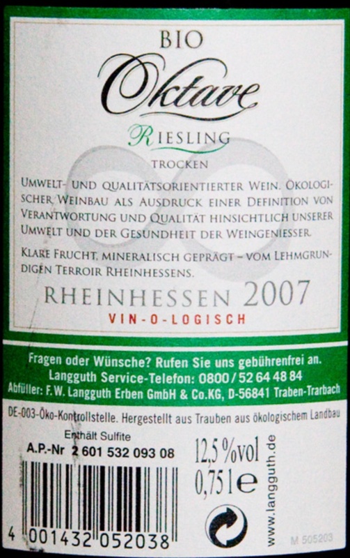 Von Gabi und Hartmut mitgebracht. Ordentlicher, geradliniger Riesling. Besser als meine bisherigen Erfahrungen mit Bio-Wein aus dem Bio-Handel. Der Silvaner war aber ein bißchen netter, glaube ich.