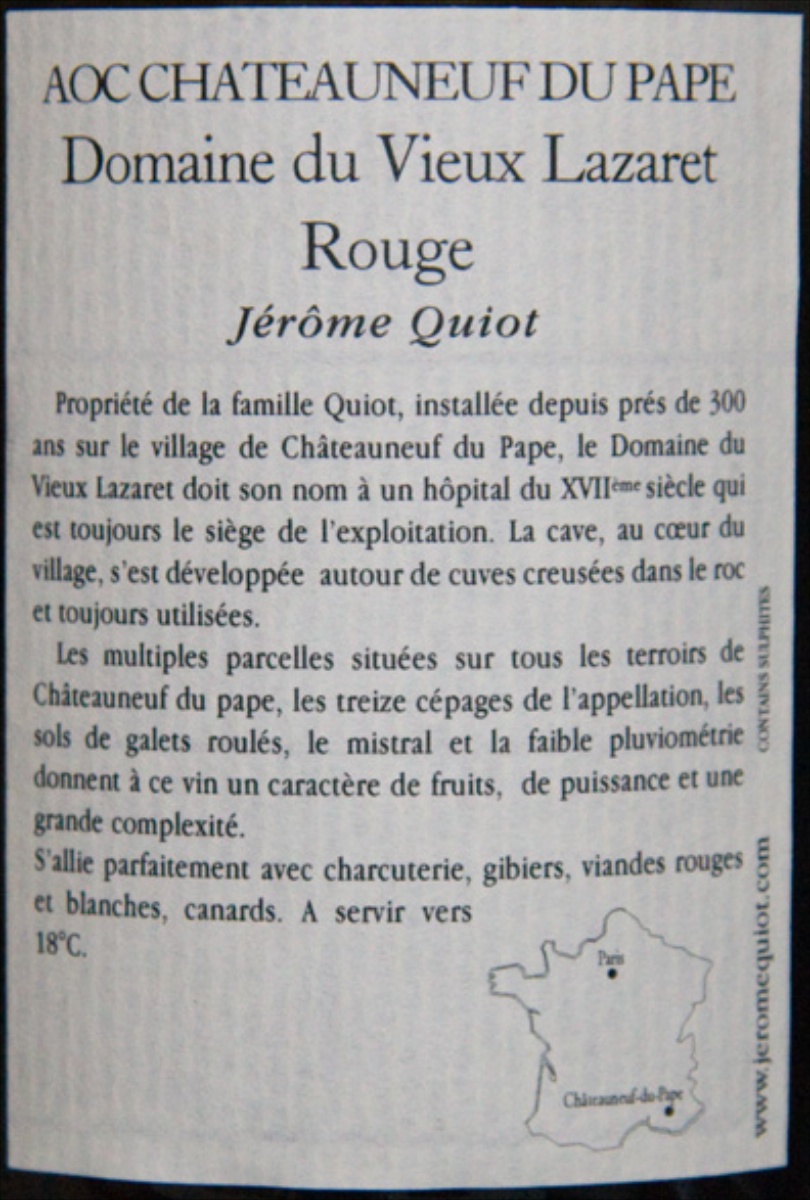 So wollte ich einen Châteauneuf-du-Pape, gewürzig kräftig samtig schön. Ein kleines bißchen noch nicht eingebautes Tannin zeigt, daß er noch reifen kann, aber sehr gut trinkbar ist es durchaus schon. Wunderbar, mal wieder nehmen. 18,10 Euro bei Rot & Weiß.