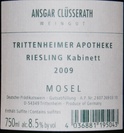 Ansgar Clüsserath, Trittenheimer Apotheke, Riesling Kabinett 2009