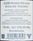 BattenfeldSpanier, Riesling Hohen-Sülzen 2008