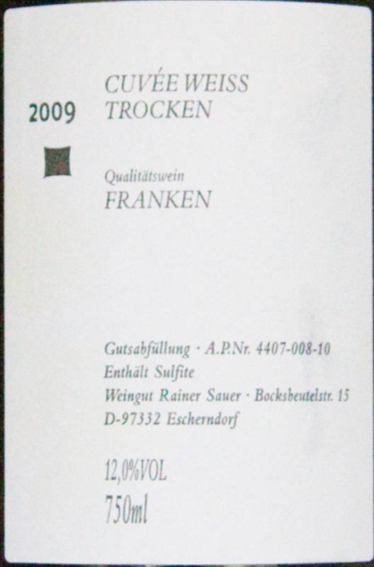 Müller-Thurgau, Bacchus, Riesling sind da drin, das muss ich wohl mal wieder aufführen. Immer noch wunderbrar frisch und lebendig. Nicht den Power-Rieslingen gewachsen, die Jörg und ich vorher hatten, aber auch erheblich preisgünstiger mit € 6,30 bei Rot & und Weiß.