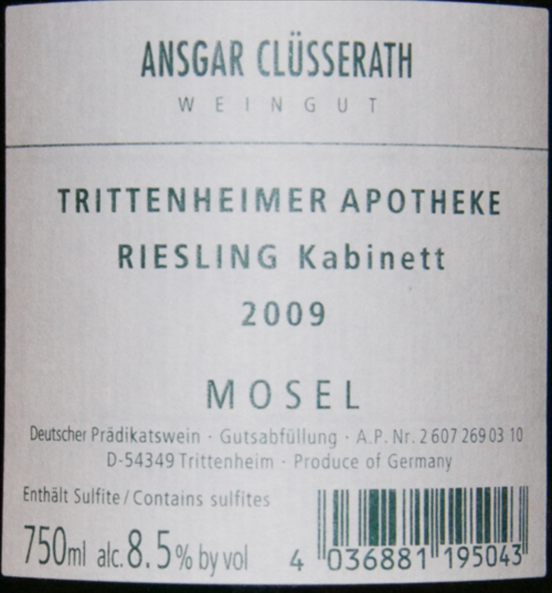 Endlich! Die Trittenheimer Apotheke -- vielleicht, denn dieser ist nicht so, wie der andere war. Er hat zwar alles dabei, ist aber deutlich süßer als der von 2004(?). Deshalb nicht ganz so erfreulich, aber immer noch ganz großes Kino, eher besser als der von Prüm. Gut 12 Euro bei Lindenberg.