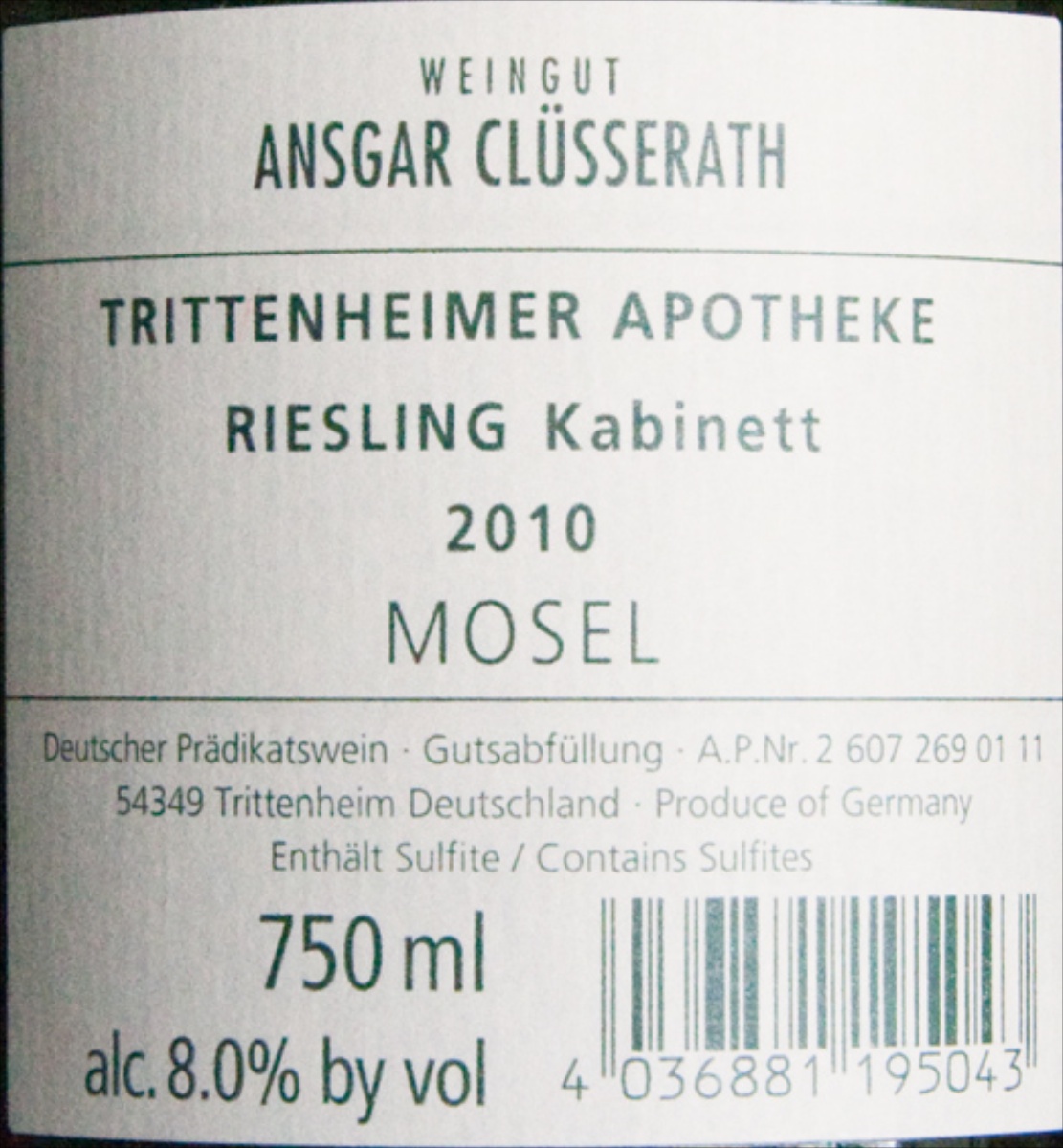 Die Apotheke; weniger süß als der 2009er, damit immer noch halbtrocken, aber schöner und wieder äußerst erfreulich! Der wird ein wenig Bevorratung erfordern. Knapp 11 Euro bei Lindenberg.