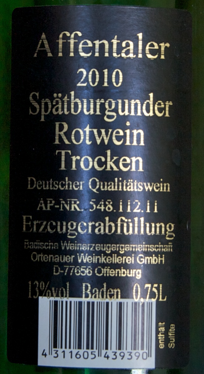 Passabel, aber nicht so schön wie der bei gleicher Gelegenheit und etwa zum gleichen Preis gekaufte vom Badischen Winzerkeller. Reichelt, bei 6 Euro.