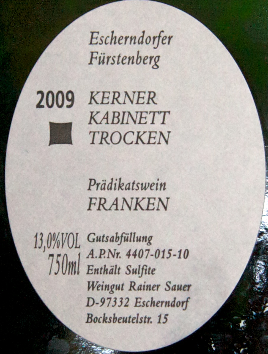 Rainer Sauer, Kerner Kabinett trocken 2009