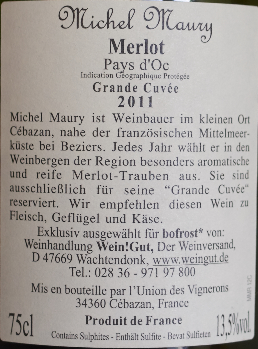 Überraschenderweise eher halbtrocken, breit, weich, übergefällig, matschig, nicht so spannend. Hatte Susanne geschenkt bekommen.
