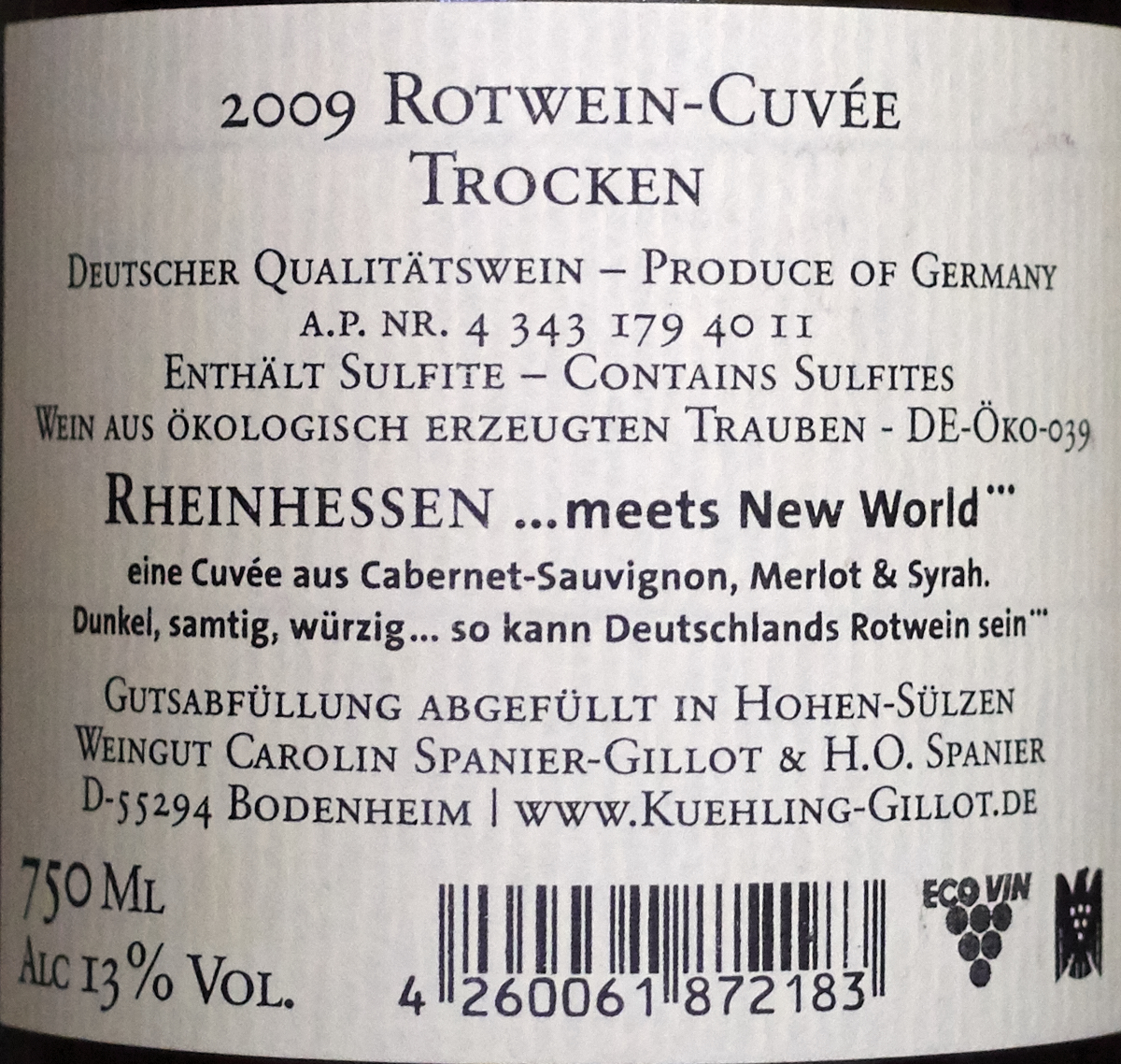 Ziemlich gelungene Rotwein-Cuvée, noch mal probieren bei Gelegenheit. € 10 Weinladen Lichterfelde.