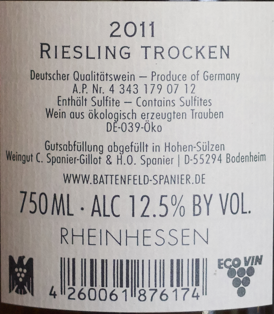 Schon relativ fetter Riesling, richtig gut. Auch wenn der Hohensülzen noch eindrucksvoller war. Weinladen Lichterfelde, € 11,35.