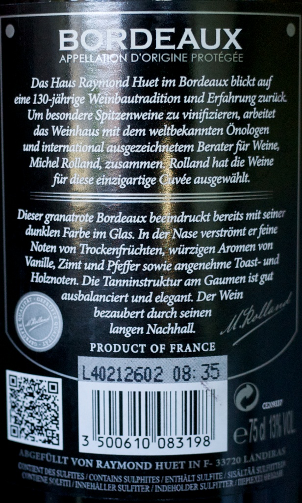 Michel Rolland finde ich ja zwiespältig, diesen Wein aber nicht. Der war einfach nur flach und langweilig. Das schwerste war die Flasche mit fast 1,5 kg. Die 8 Euro bei Reichelt nicht wert.