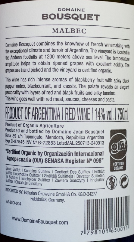 Zum Bring-A-Bottle-Thema Südamerika. Leider flach und wenig attraktiv, mehr Farbe als Geschmack. Rot + Weiß, € 8,40.