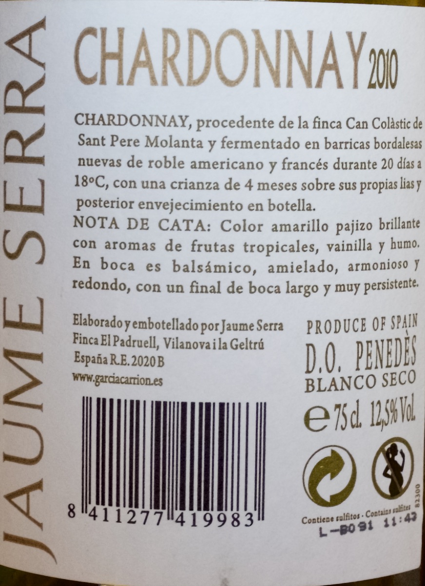 Jaume Serra Chardonnay 2010