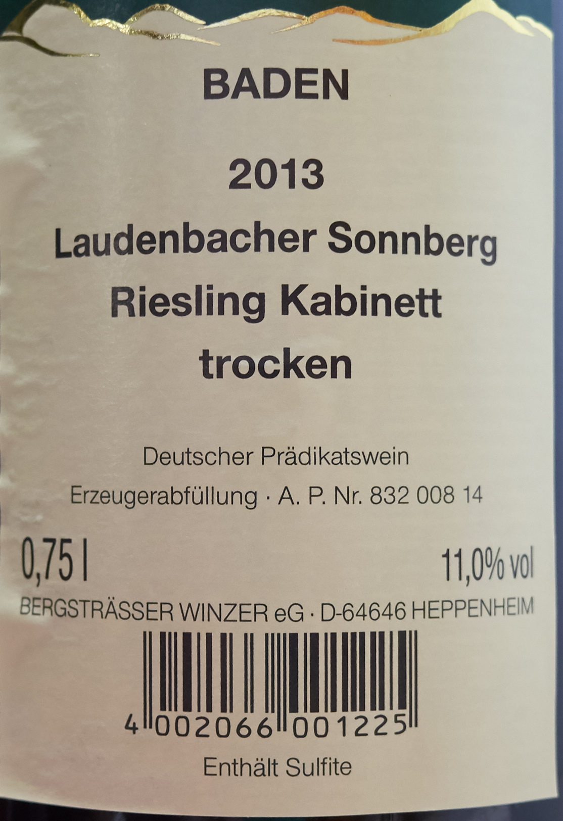 Laudenbacher Sonnberg, Riesling Kabinett trocken 2013