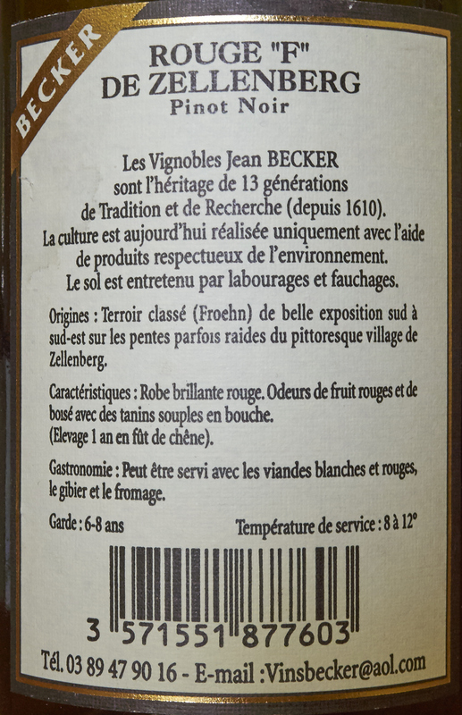 Becker, Rouge "F" de Zellenberg, Pinot Noir 2010
