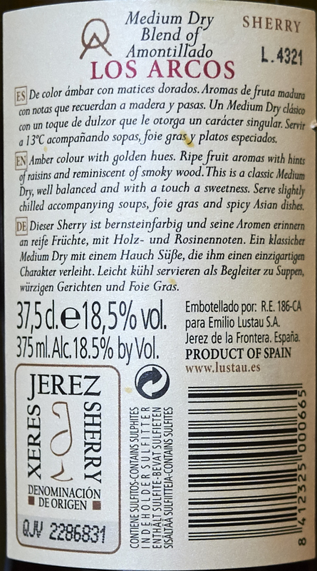 Schon mal sehr angenehmer Sherry, sehr aromatisch und ausgewogen mit deutlicher Süße und erstaunlich kräftiger Säure. Den kann man nehmen! Erinnert ein bisschen an Whisky. :–) Vinos y Tapas, € 9,90.