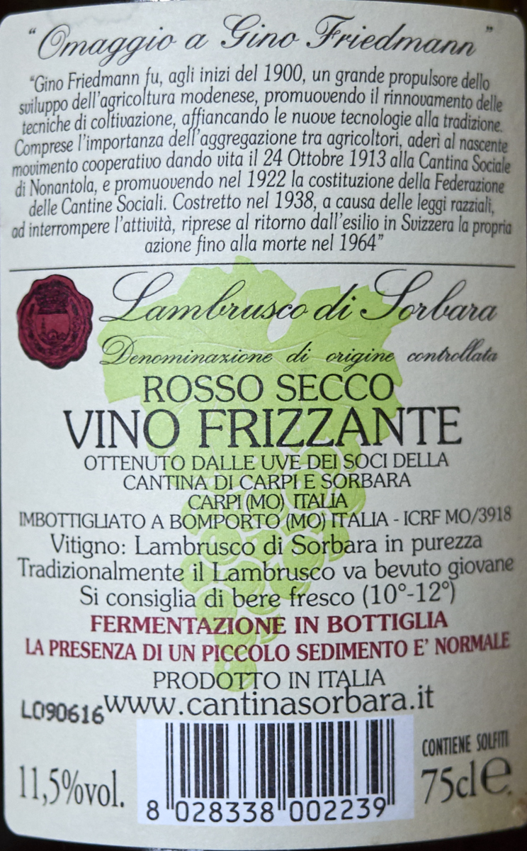 Aufgeschüttelt und mit der richtigen Temperatur erheblich besser. Nicht mein Lieblings-Lambrusco, aber schon wirklich gut.