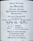 Machmer "Gold Edition" Bechtheimer Geyersberg Riesling Zero Auslese trocken 2012