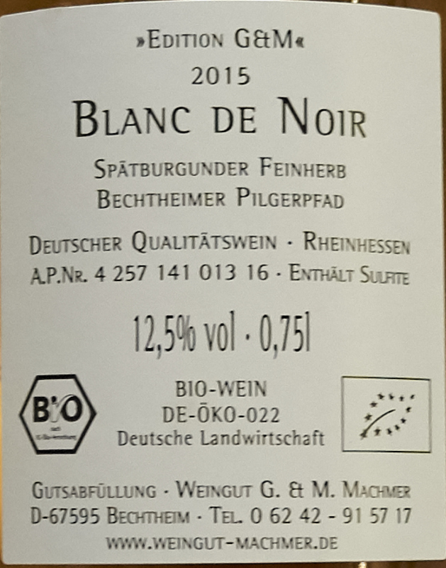 Machmer, Edition G&M Blanc de Noir, Bechtheimer Pilgerpfad, Spätburgunder feinherb 2015