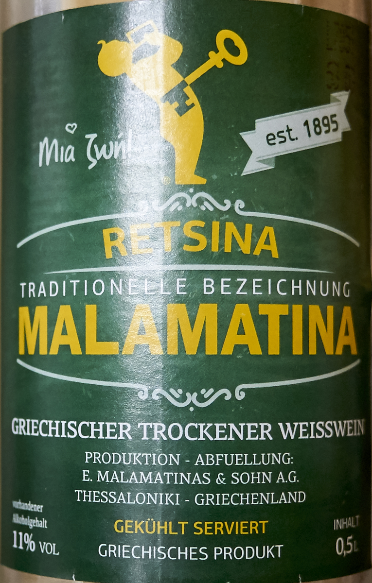 Angemehm frisch-herzhafter Retsina; besser als ich diese Art in Erinnerung hatte. Dafür günstig mit 3 € bei der Gyrosbude.