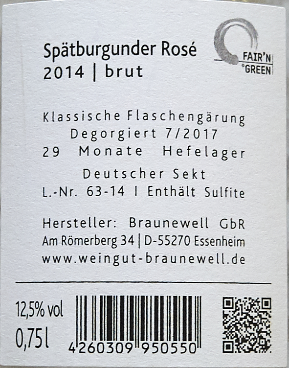Braunewell, Spätburgunder Rosé brut 2014