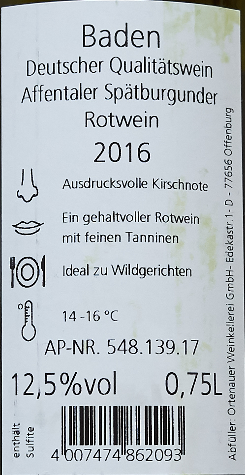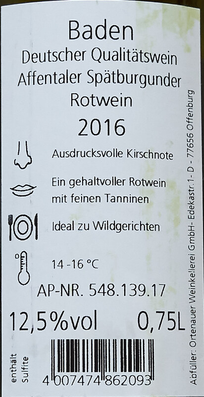 Standardmäßiger deutscher Spätburgunder. Mäßig spannend. Der von Machmer ist erheblich besser für wenig mehr Geld. Reichelt, 6 €.