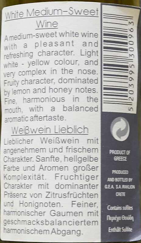 Lieblicher Weißwein ist eigentlich nicht meins, aber dieser war wirklich nicht schlecht. Eigentlich sogar interessant, aber letzten Endes eben doch zu süß. Elias' Gyrosland, € 4,50.