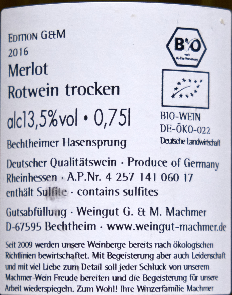 Sanfter, runder harmonischer Merlot. Man schmeckt den Merlot schon, aber er ist hier vollkommen inoffensiv, ein bisschen weichgespült. Aber schlecht ist der nicht! Machmer, knapp 8 €.