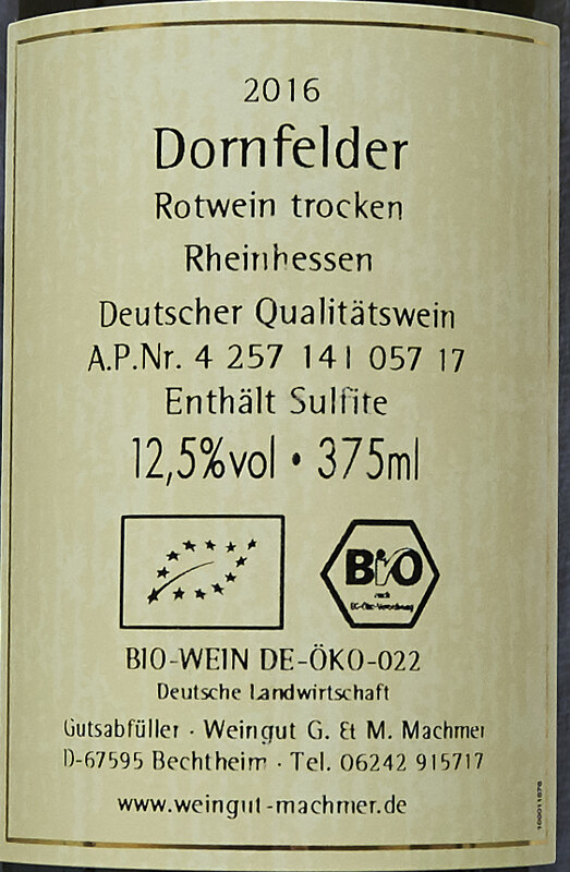 Das ist der einfache trockene Dornfelder; der ist dann schon wieder eher Dornfelder-typisch. Der "Edition" ist da viel besser. Dreingabe bei Machmer.