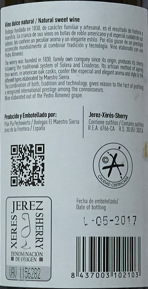 Eher junger PX, typisch, wuchtig, und natürlich sehr süß. Hat nicht die Tiefe gereifter Abfüllungen, eher wie ein G-B Nectar. In kleinen Portionen genossen ganz prima. Vinos? bei € 15? (halbe)