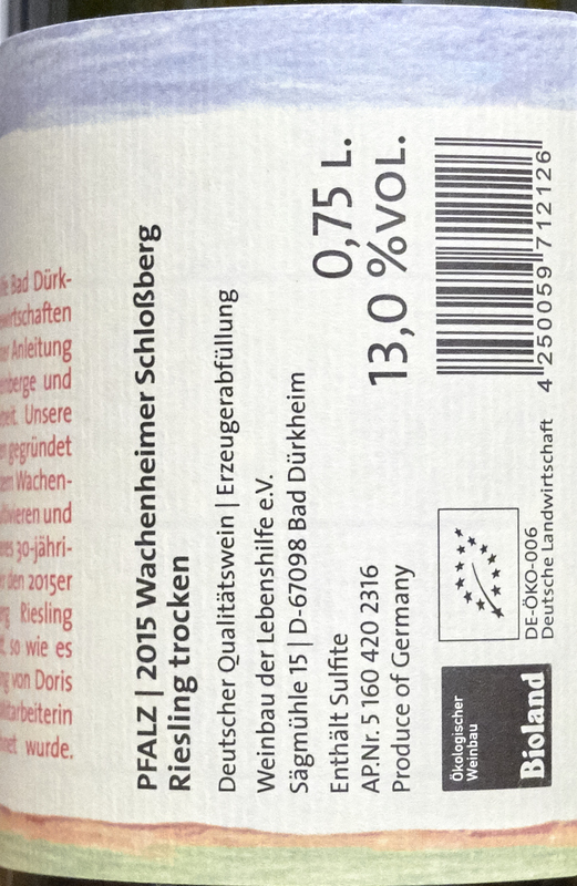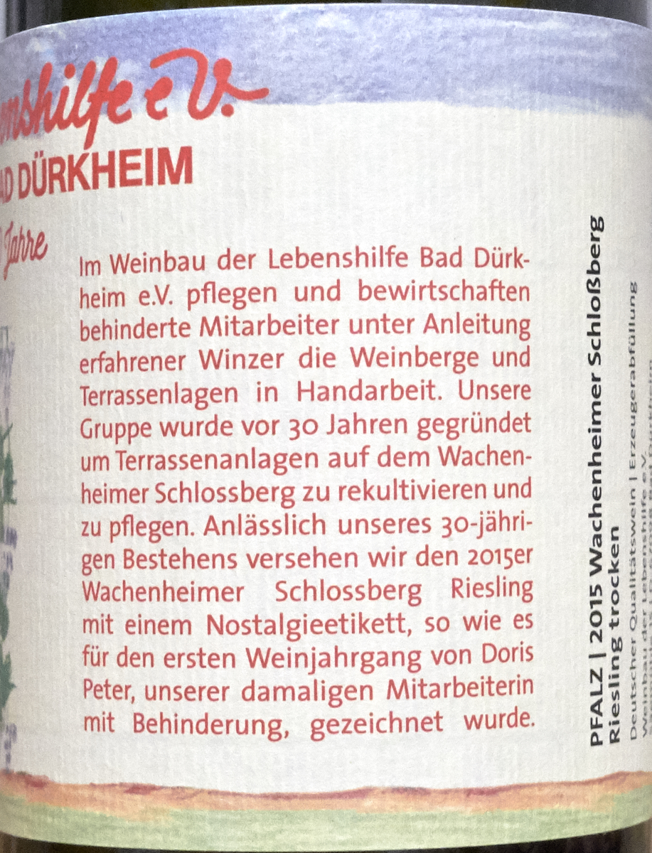 Lebenshilfe Bad Dürkheim, Wachenheimer Schlossberg Riesling trocken 2015