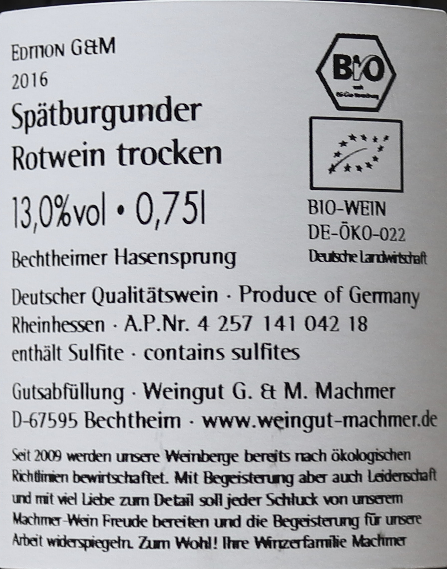 Neuer Jahrgang vom bewährten, sehr guten Spätburgunder. Ich entdecke inzwischen eine Ähnlichkeit zum Bourgogne; kein Wunder, dass er mir so gefällt. Machmer, inzwischen 7,70 € und damit immer noch sehr günstig.