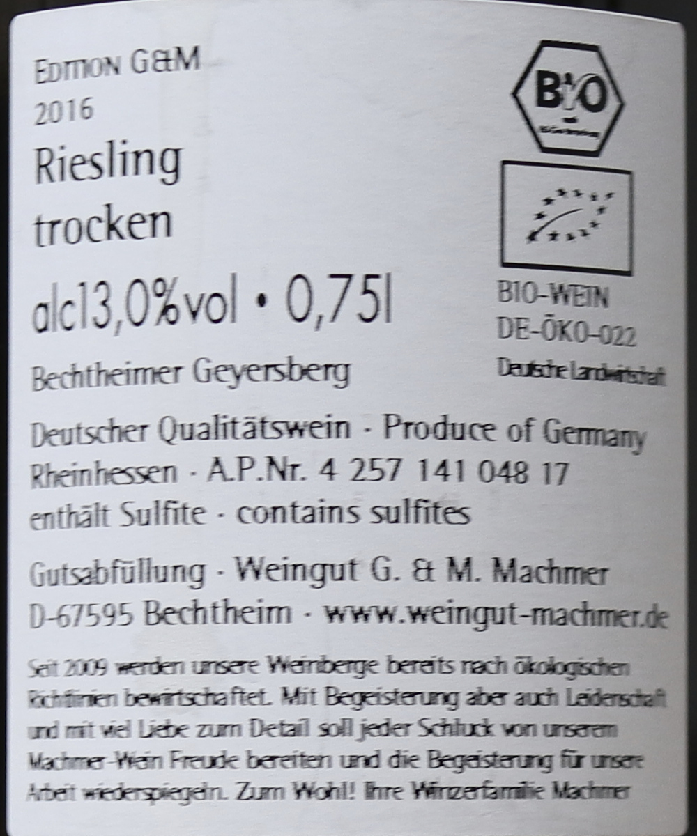 Kostete der tatsächlich nur 13 €? Kann man sich kaum vorstellen. Noch relativ jung und mit noch etwas Frische hat er schon die deutlichen Reifenoten, die die fetten Rieslinge so attraktiv machen. Und dieser ist es! Machmer, 13 € (sagt die Website).