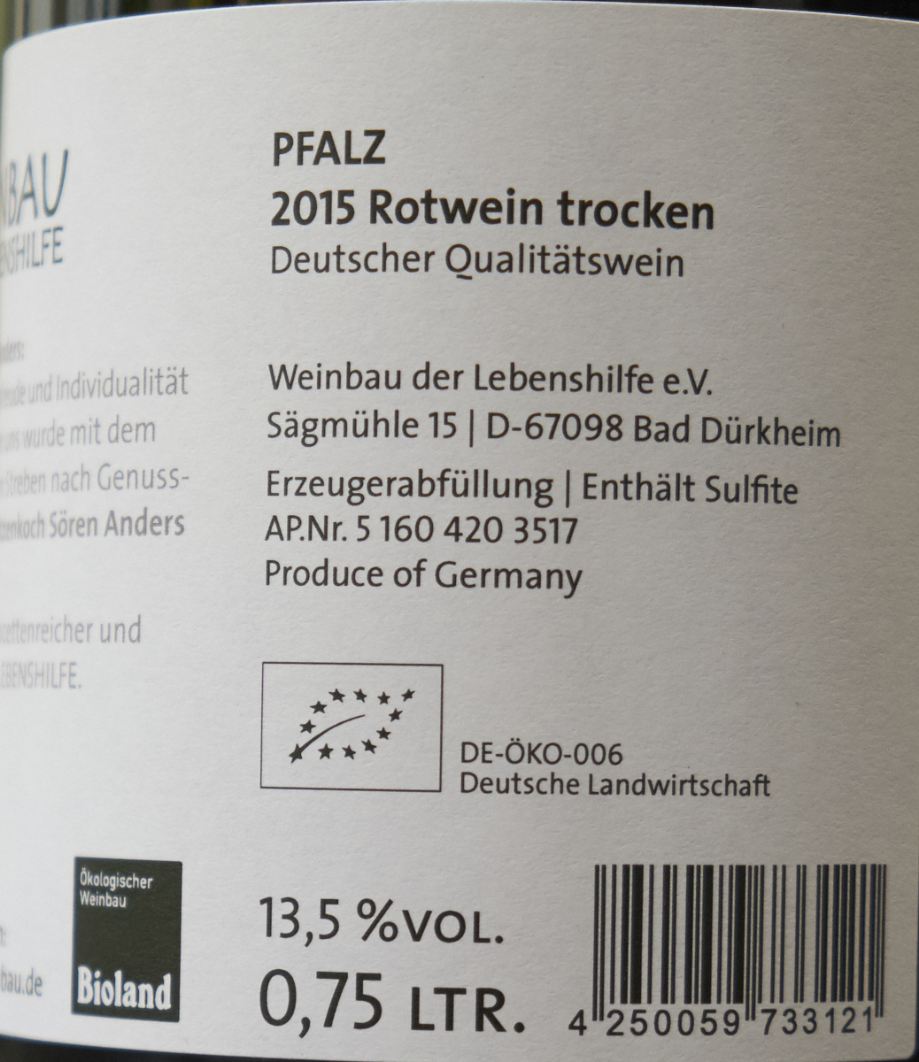 Lebenshilfe Bad Dürkheim, Lebenshilfe mal anders, Rotwein trocken 2015