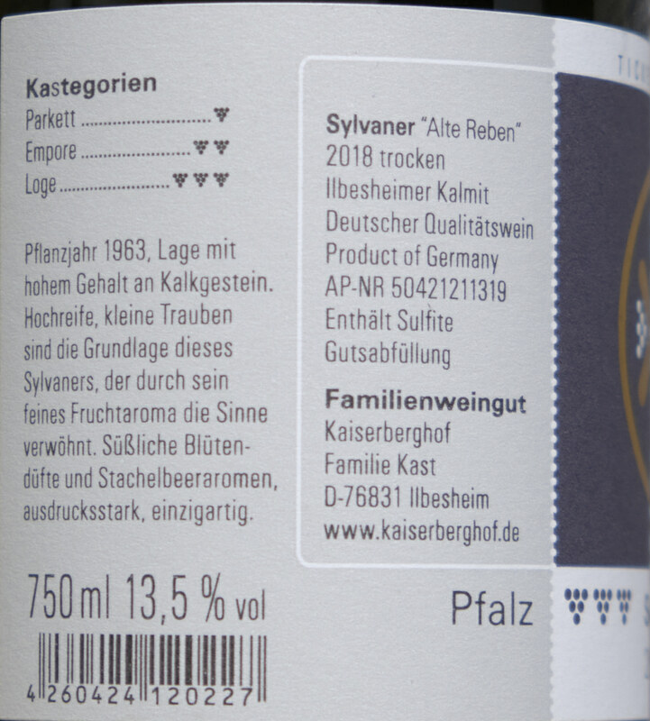 Na, das ist mal ein Sylvaner! Sehr kräftig, fast fett, hochattraktiv. "Mit feiner Säure und zarter Blume" sagt Wikipedia zu Sylvaner, aber zart ist dieser nicht. Intensität ist das Stichwort. Kast, bei 7 €.