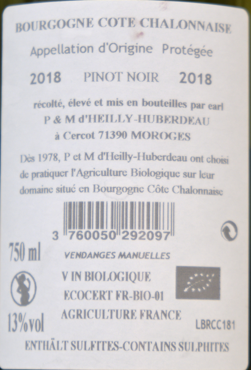 d'Heilly-Huberdau, Bourgogne Côte Chalonnaise, Pinot Noir 2017