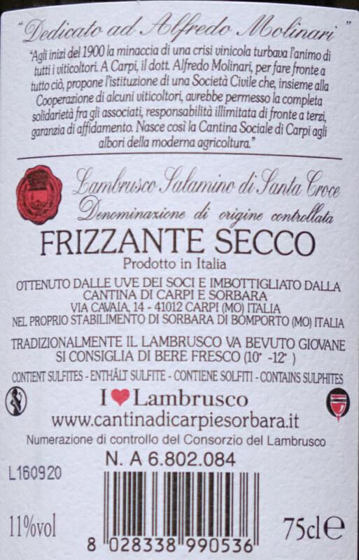 Salamino di Santa Croce, Lambrusco Frizzante secco "Alfredo Molinari"