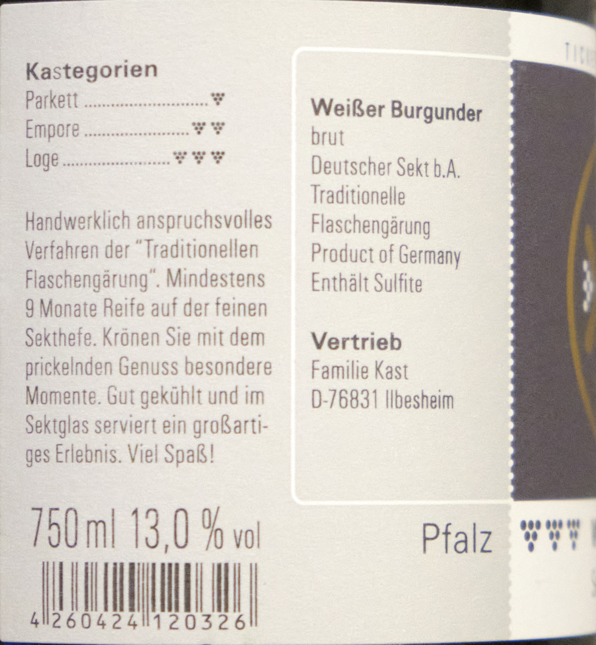 Schön! Nicht so auffallend wie der (gleichzeitig geschenkte) "Liebespaar", aber ein richtig reizvoller Sekt ohne Problemzonen.