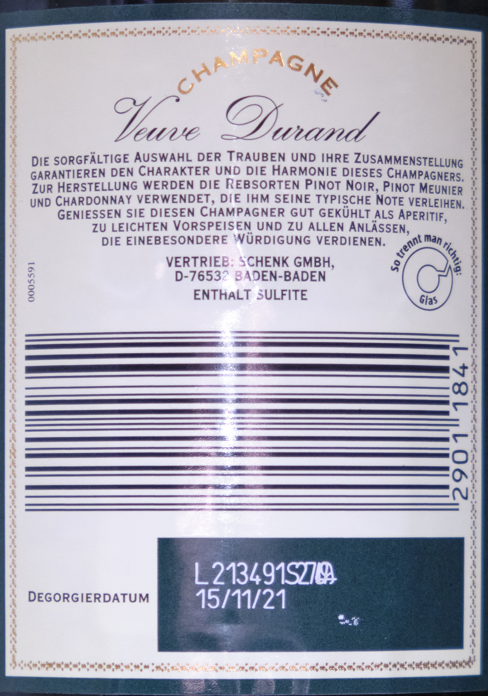 Der Aldi-Champagner, ein Klischee seit Jahrzehnten. Dieser ist gar nicht übel, hat so typische, attraktive Noten, wirklich lecker und weit vom typischen deutschen Sekt entfernt. Das ist jetzt kein wirklich guter Champagner, aber zu dem Preis wirklich eine Bombe. Aldi 13,95 €