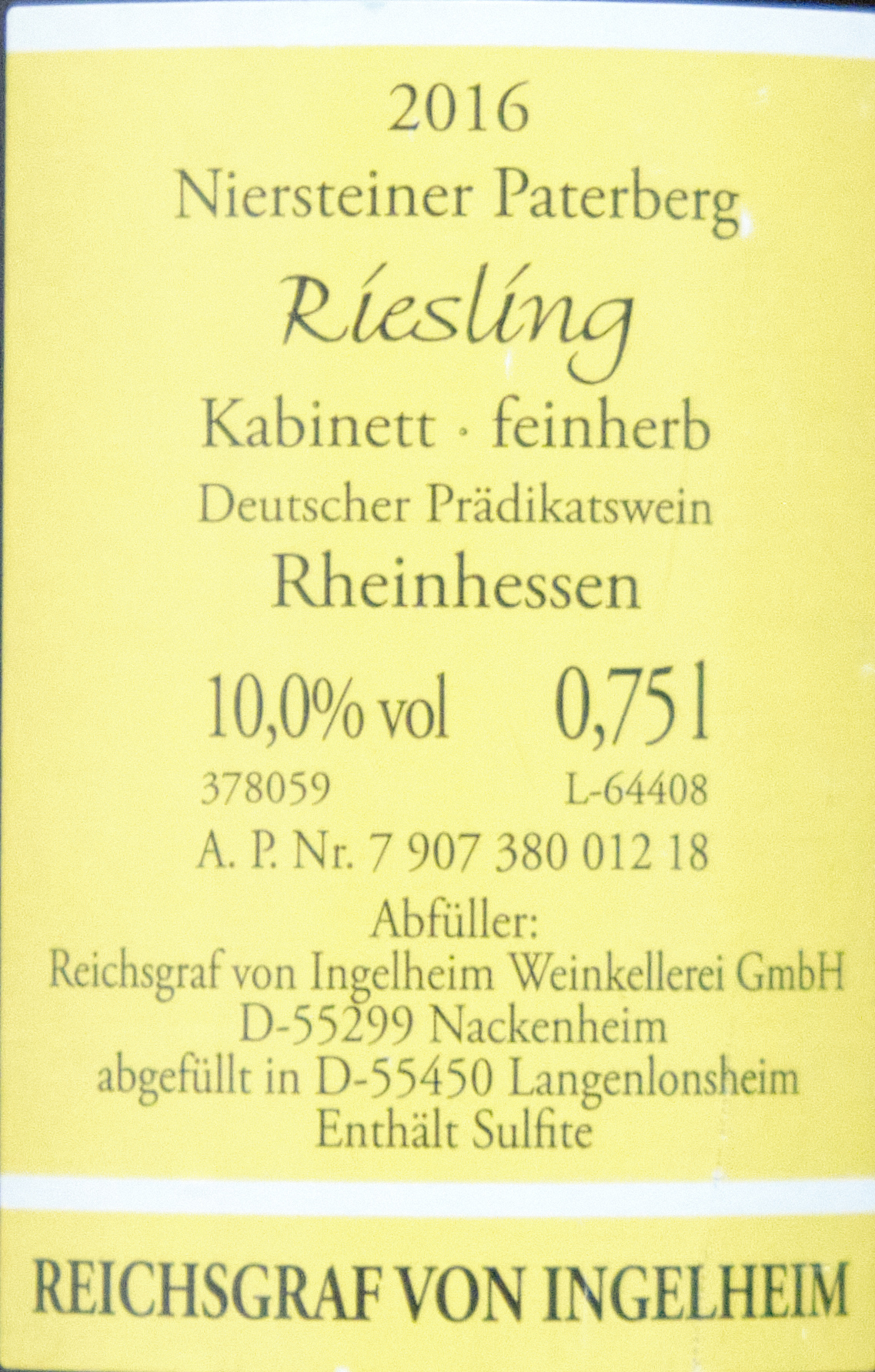 Den muss er mal geschenkt bekommen haben; das war nicht seins. Meins auch nicht. Ich finde ihn trinkbar, besser als den (hier nicht aufgeführten) Dornfelder aus dem selben Haus, aber eigentlich nicht gut — da stehen Süße und Säure komisch nebenenander und wirken nicht integriert oder balanciert. Unter der Treppe