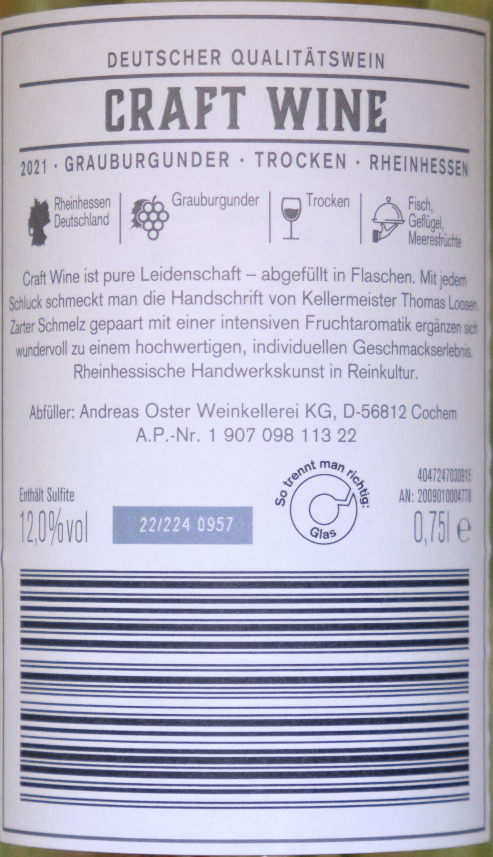 Als Kochwein gedacht, war dieser wie erwartet kräftig, markant, und mit einer schönen Säure, sortentypisch und als einfacher kräftiger Grauburgunder aber auch schön zu trinken. Aldi, bei 4 €(?)