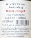 Winzer Krems, Sandgrube 13, Blauer Zweigelt 2021