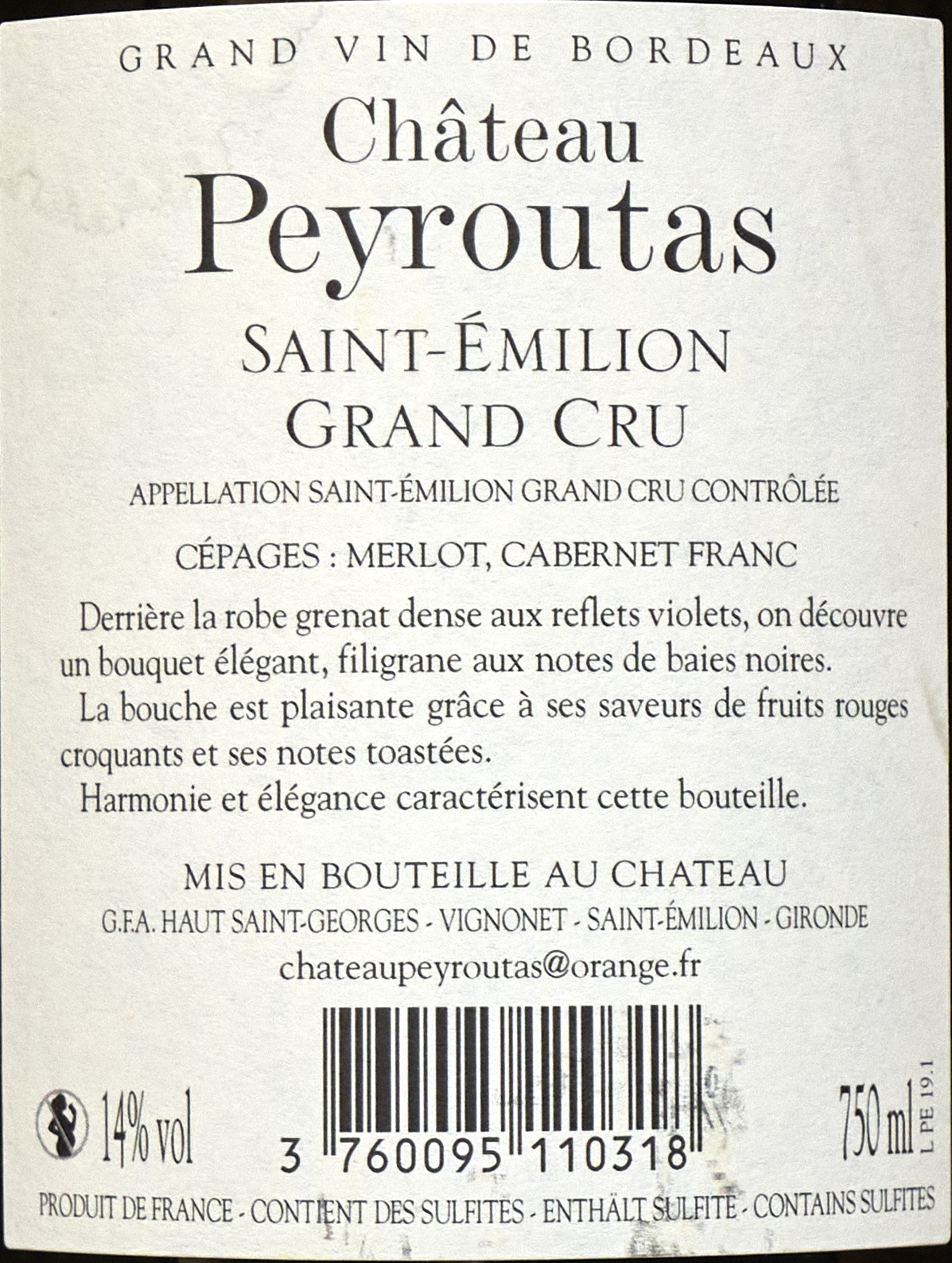 Peyroutas, Saint-Émilion Grand Cru 2019