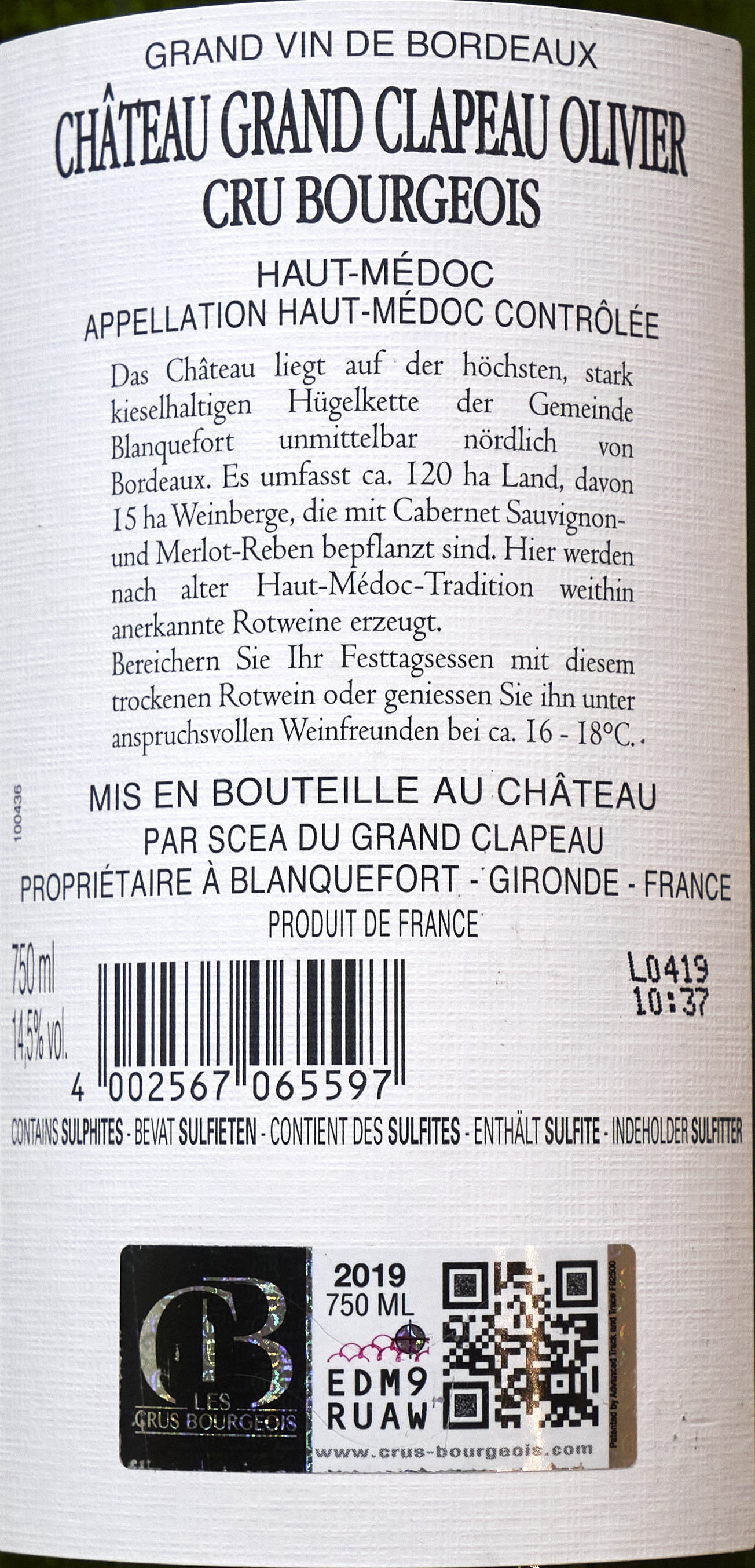 Nach wie vor ein sehr solider Bordeaux vom linken. Diesmal gefiel er mir wieder besser als vor zwei Jahren – ich fand ihn richtig schön und seinen Preis sehr gut wert. Reichelt 10,99 €