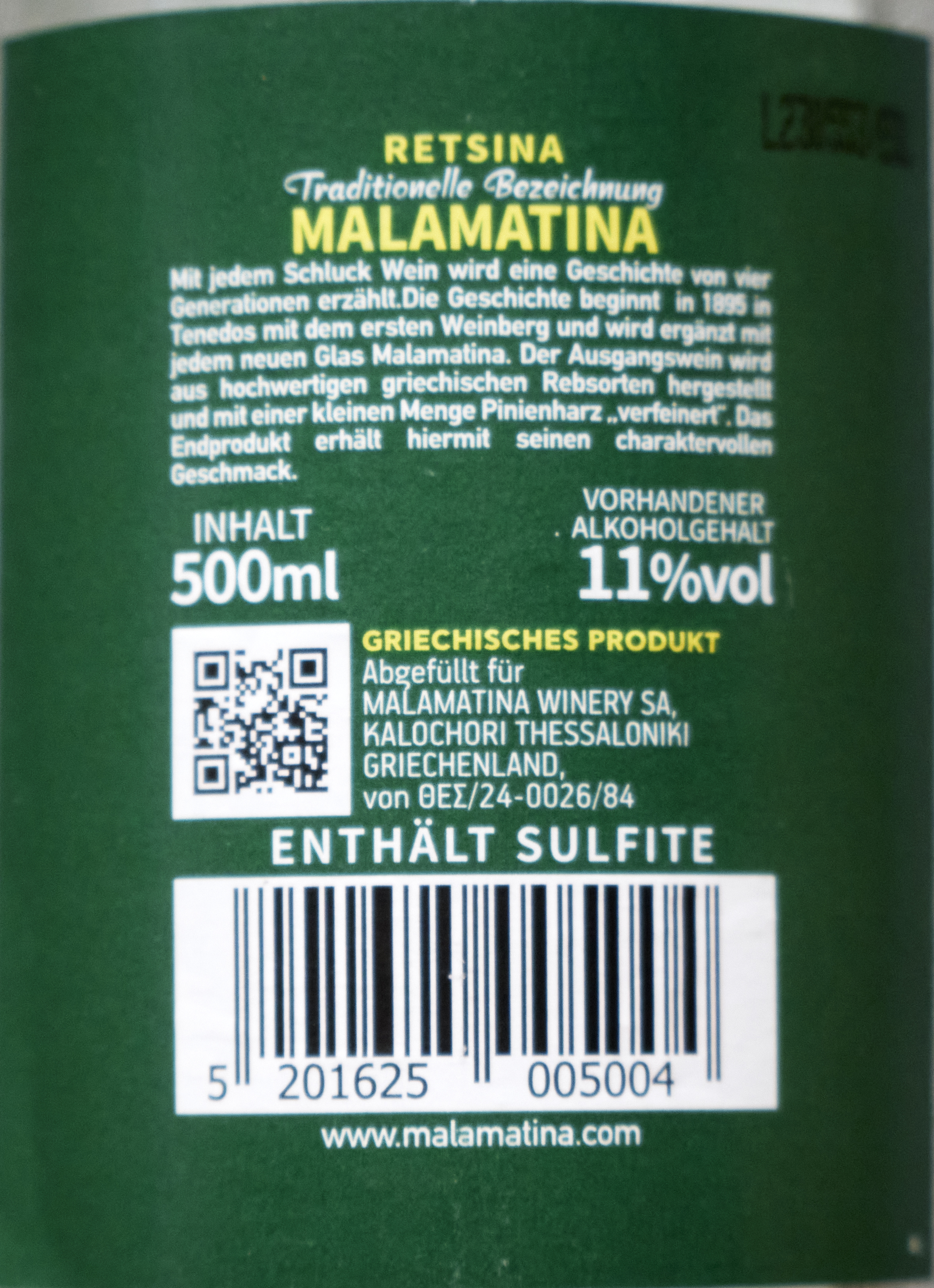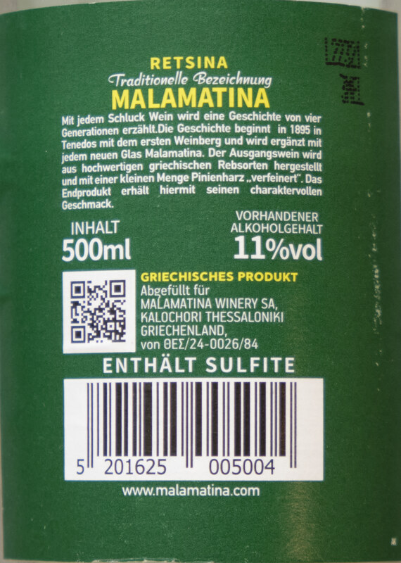 Das ist kein Spitzen-Retsina, eher ein schlichtes Gewächs – der mal bei Tolli war erheblich besser. Aber er ist frisch, trocken, harzig (bisschen eckig darin), was man so in dieser Liga erwarten kann, und damit dann doch ganz schön. Und er ist quasi zur Hand, das ist ein Vorteil. Elias' Gyrosland 5 €
