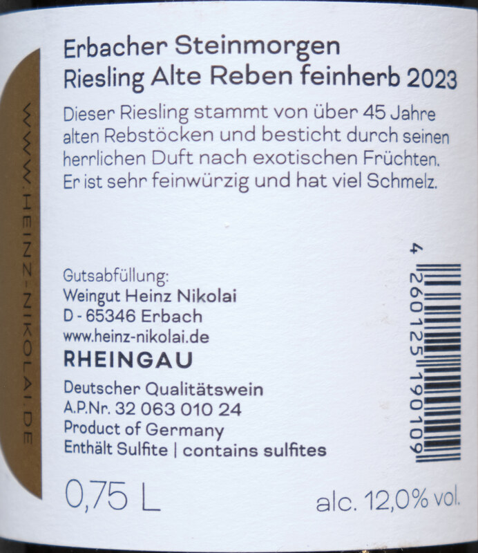 Klar feinherb/halbtrocken. Guter Riesling mit einer schönen Intensität und sehr ausgewogenem Säure-/Süße-Verhältnis. Weinrunde