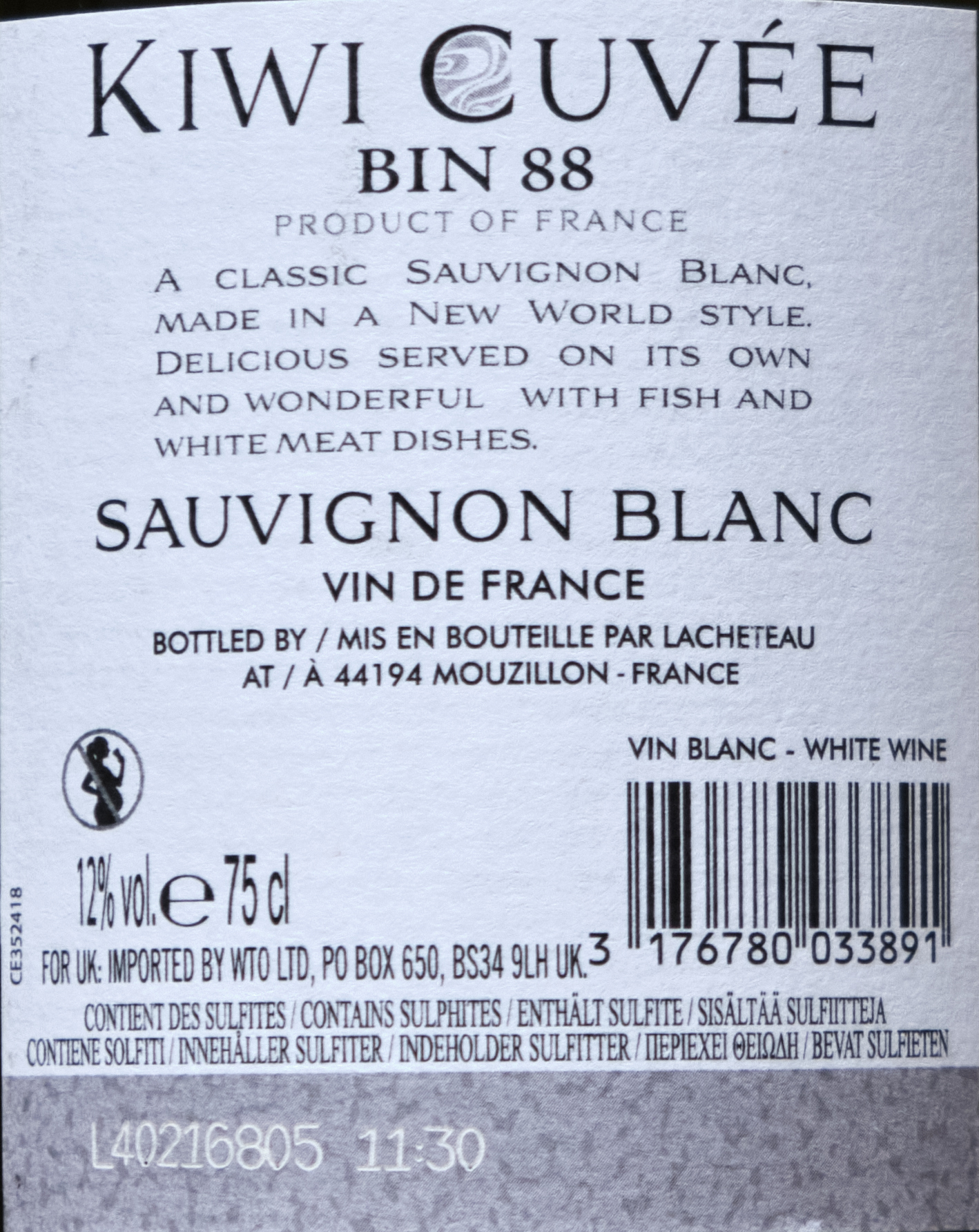 Wieder dieser Täuscher, wo das Etikett einen erst glauben macht, es sei ein Neuseeländer, ist aber doch ein Franzose. Auch vom Geschmack her ist er ein Neuseeländer. Eigentlich zu billig. Reichelt 4,49 €
