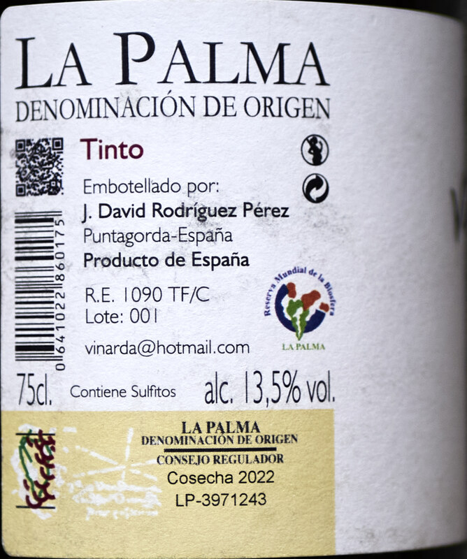 La Palma, einer der merkwürdigsten Rotweine, die ich je getrunken habe. Er ist irgendwie ganz flach, aber doch nicht ohne Geschmack, aber es es nicht Süße oder Säure oder Frucht oder Mineralität, sondern ganz merkwürdige Aromen — Lakritze? Sehr eigenartig. Nicht wieder kaufen. Vinos de Canarios 10,90 €