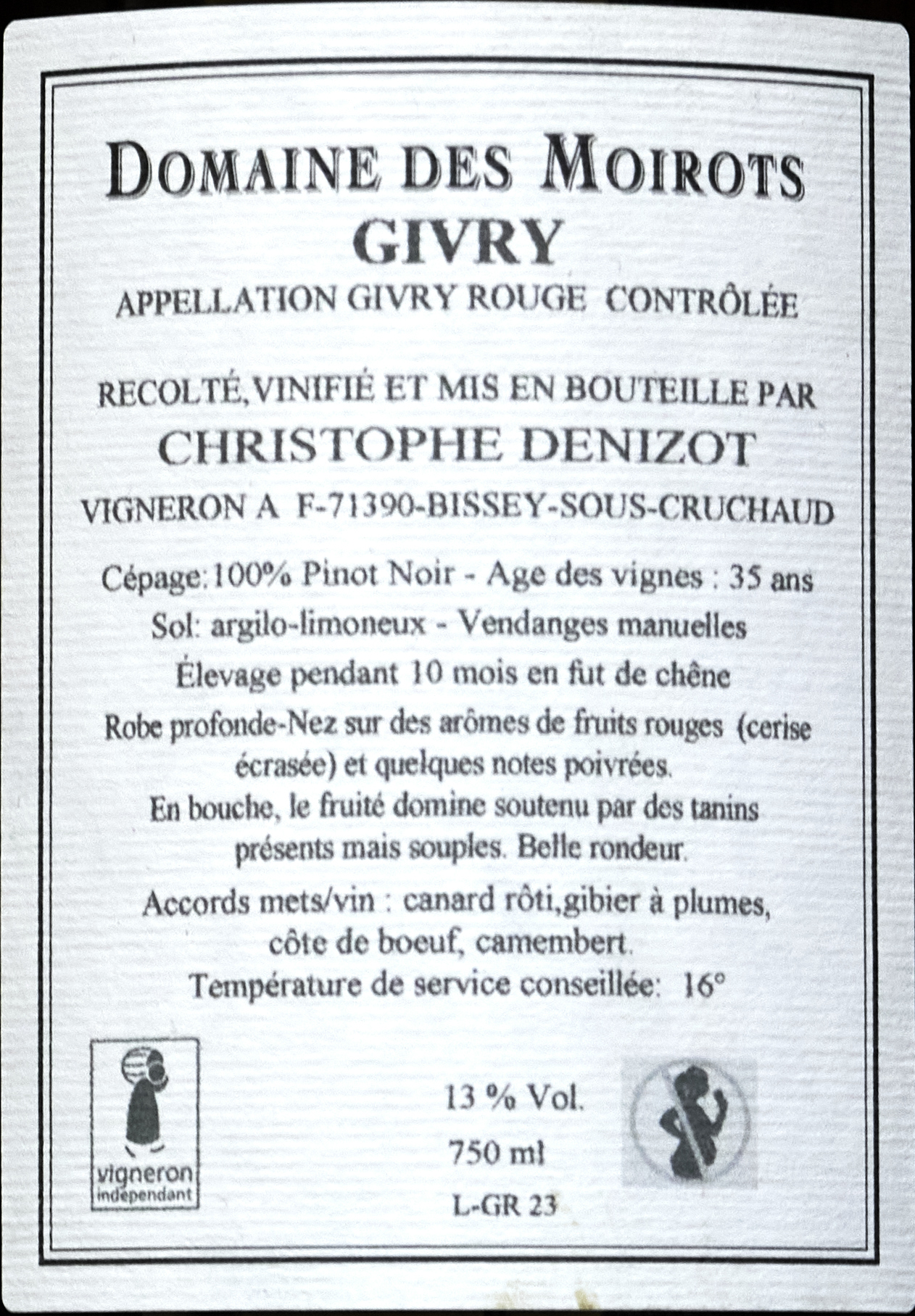 Wenig überraschend dem Bourgogne Pinot Noir nicht unähnlich, aber dieser legt noch mal eine sehr ordentliche Schippe drauf. Wirklich richtig toll, ganz großer Stoff. Für mich der beste in Paket. Les Climats, im Moirots-Abschiedspaket, gesamt 120 €, einzeln 26,70 € oder so.